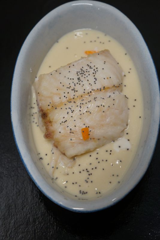 Cassolette de St Jacques, crevettes et julienne de légumes, sauce au Whisky